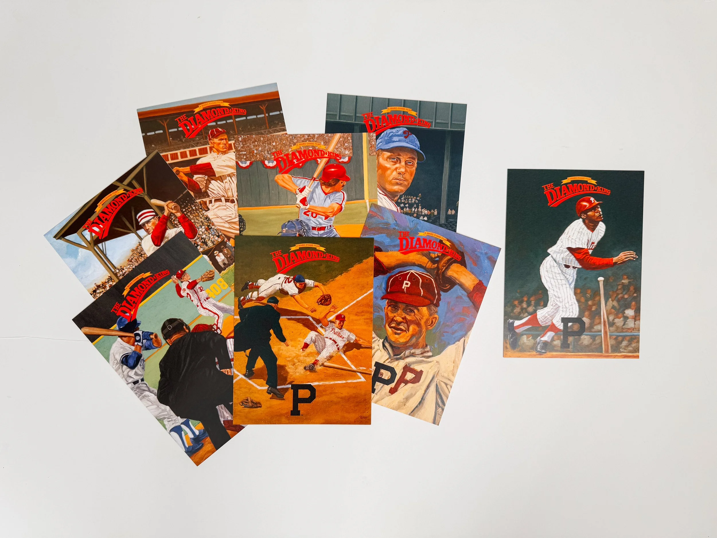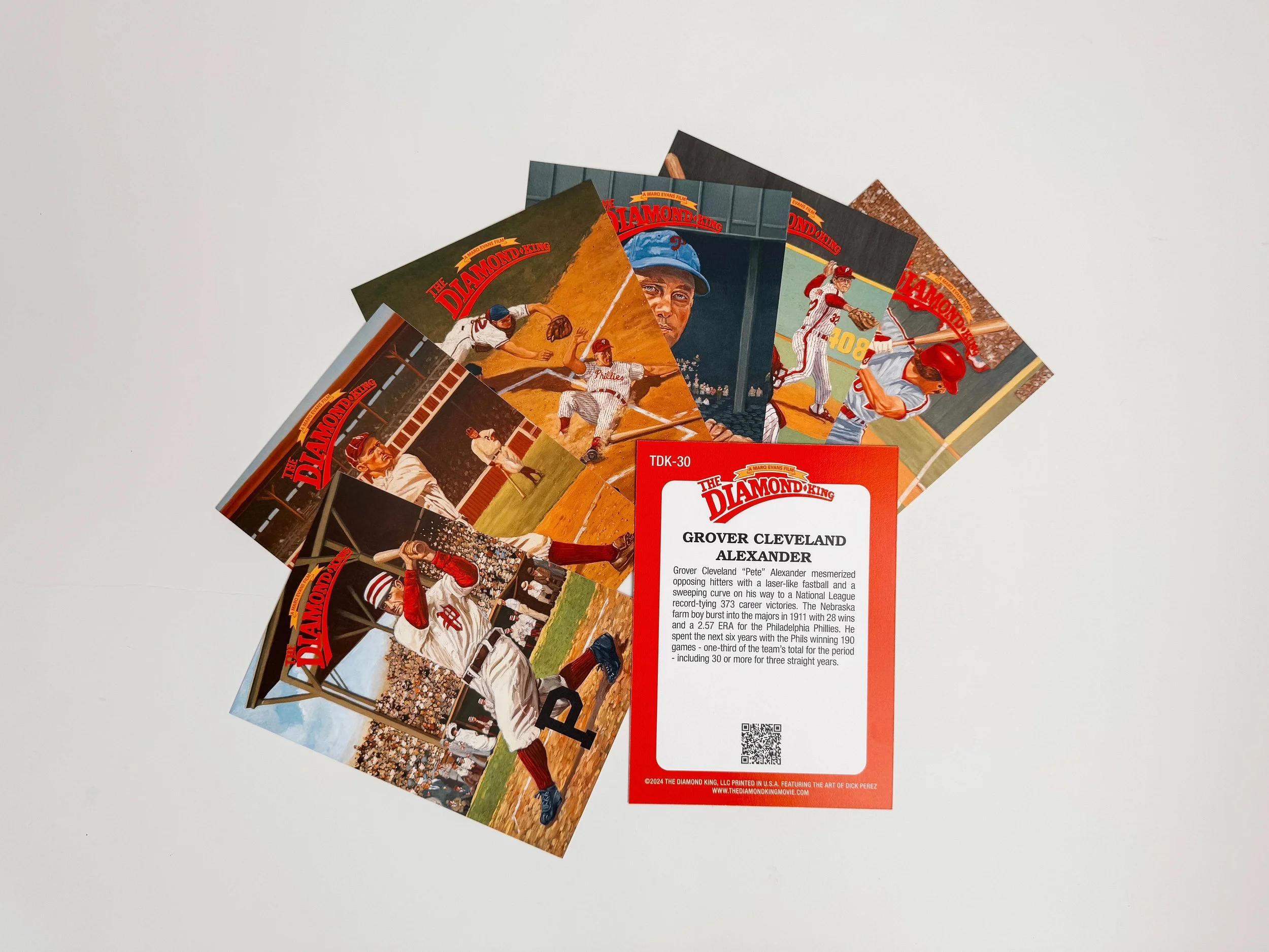 A must have for any collector of Dick Perez works, this final set of 7 jumbo baseball cards was designed exclusively to coincide with the film’s world premiere at the 36th Palm Springs International Film Festival on January 6, 2025. Featuring 7 Hall of Fame ballplayers that played for the Phillies club, the set unlocks additional film content via a QR code on the back of each card.